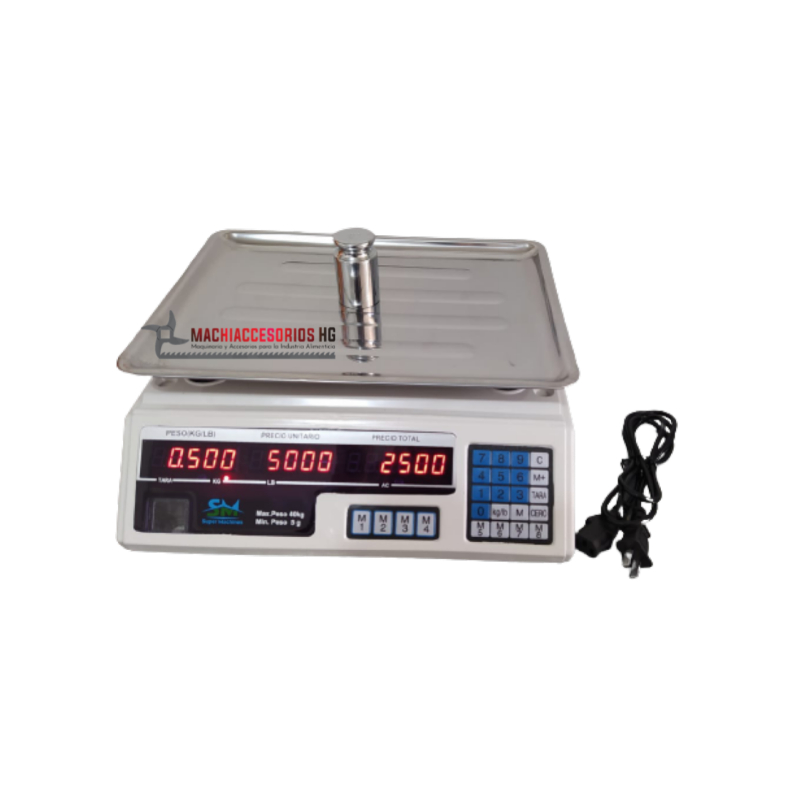 - Capacidad: 40kg con división de 5 gramos